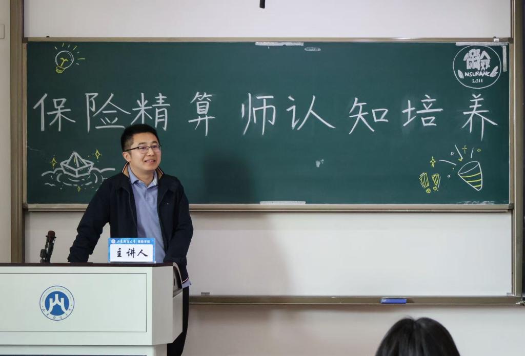 为帮助学生深化专业认知,明确未来发展方向,我院于4月30日下午承办了学校第396期成长成才大讲堂活动,也是2025年度第一期保险校友讲堂。本次活动以“保险精算师职业发展”为主题,邀请太阳成集团122ccvip2014级优秀毕业生任帅成,从个人学习和工作经验的角度,分享保险精算师的职业认知、探索与发展。活动由辅导员王倩倩老师主持,2023级、2024级本科生代表参加了此次活动。