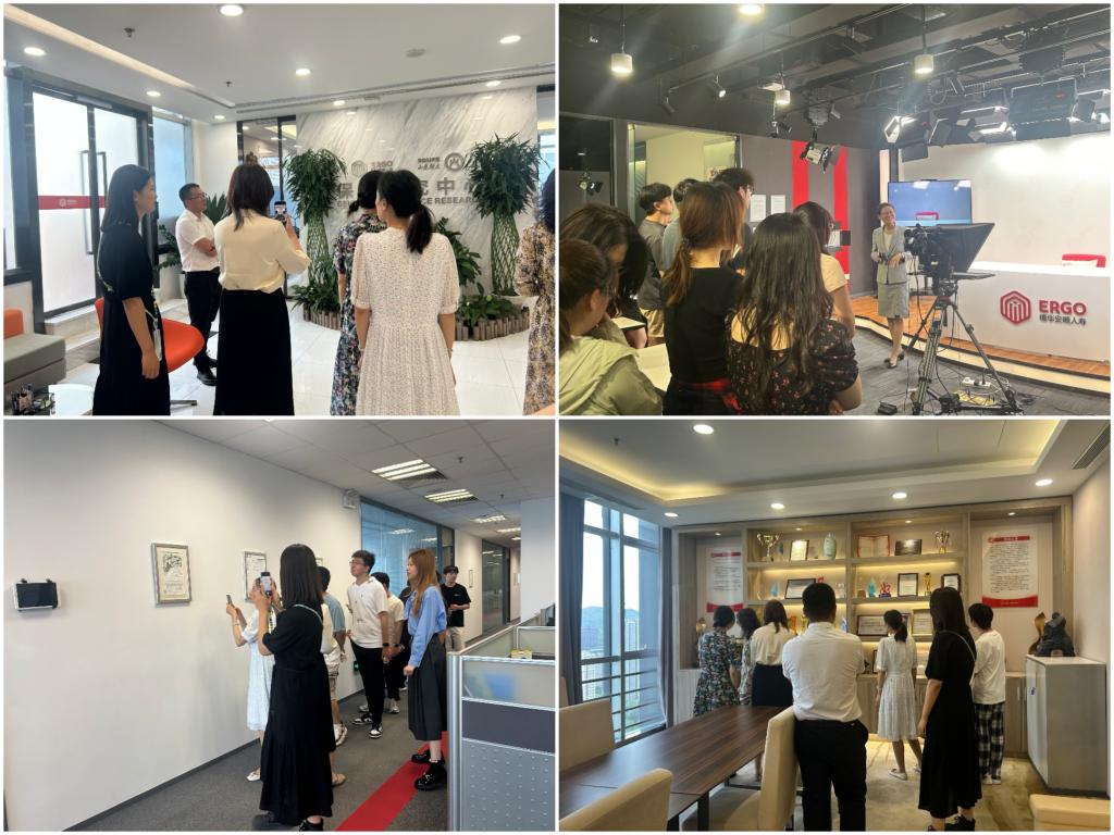 随后,汤圆和郑开武带领学院师生参观公司,同学们近距离了解各部门职能,沉浸式感受企业文化,为未来职业发展奠定了认知基础。此外,师生一行还参观了山东财大-德华安顾人寿保险研究中心,了解校企联合开展课题研究、人才培养的创新成果;在德华安顾人寿中央演播室,工作人员展示了现代保险企业在品牌塑造与数字化传播领域的创新实践。