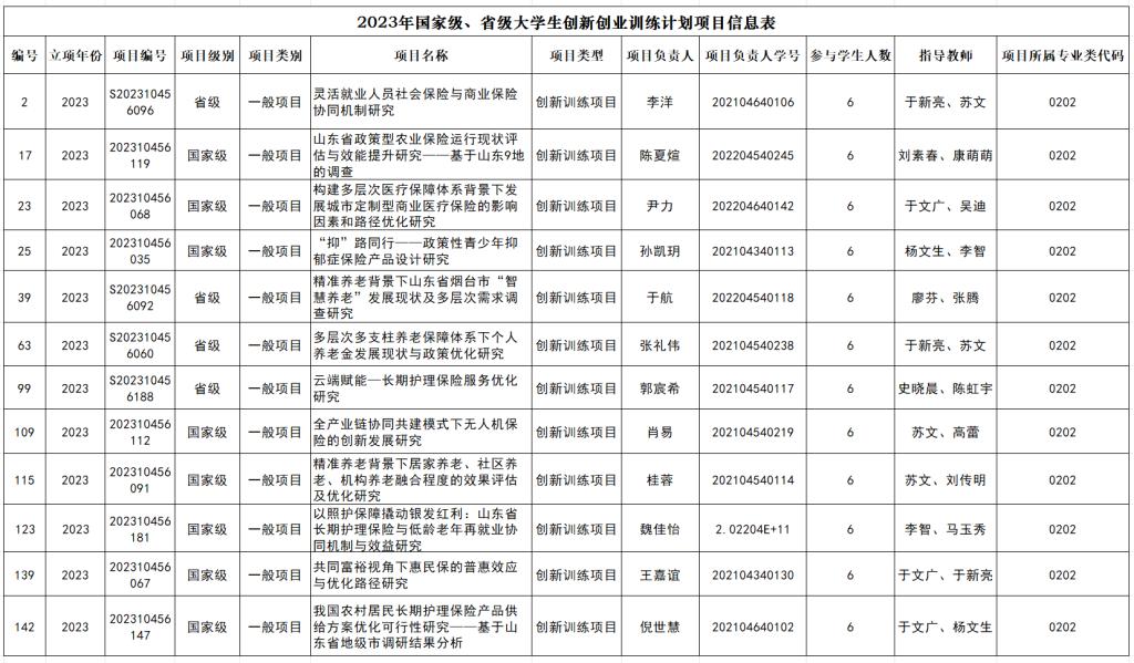 近日,教育部高等教育司和山东省教育厅分别下发了《关于公布2023年国家级大学生创新训练计划项目和重点支持领域项目名单的通知》(教高司函〔2023〕8号)、《关于公布2023年山东省大学生创新创业训练计划项目名单的通知》(鲁教高函〔2023〕25号)。本次大赛中,我校共获批78项国家级项目、74项省级项目。其中,我院学生主持参与获批国家级立项8项、省级立项4项,国家级立项人次51人,省级立项人次32人,我院获批立项人次和立项率均创新高。