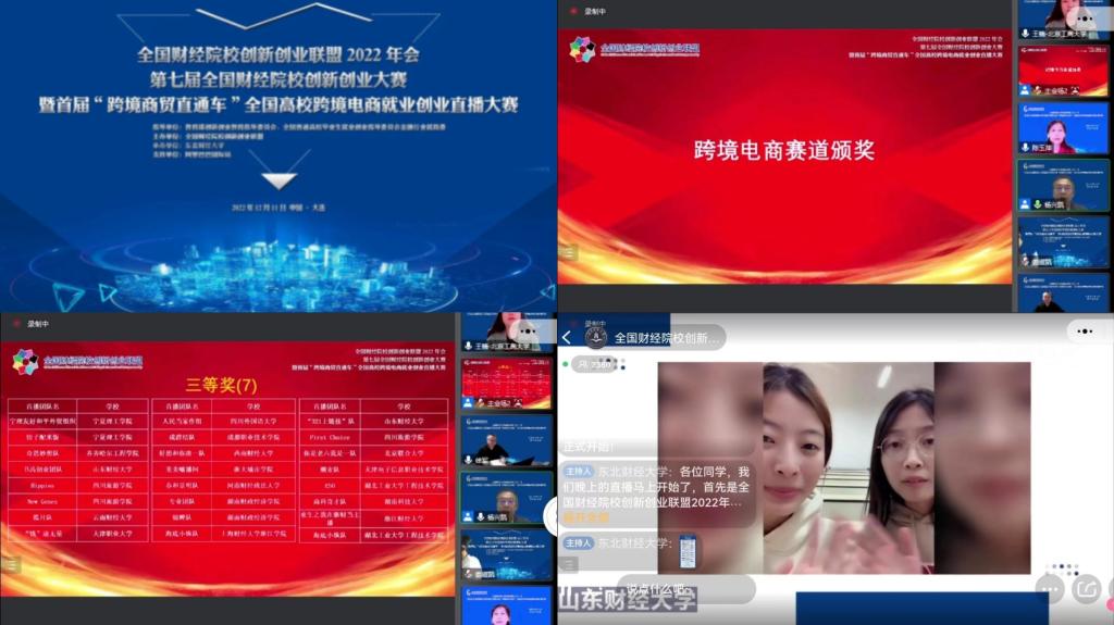 为进一步激发财经院校学生创新创业热情,展示财经院校创新创业教育成果,促进财经院校创新创业教育交流,推动校企创新创业合作,2022年12月10日—11日,第七届全国财经院校就业创业大赛暨首届“跨境商贸直通车”全国高校跨境电商就业创业直播大赛总决赛线上线下结合举行。由我院院长于文广教授、李智老师指导的“321上链接”团队喜获“跨境电商赛道”全国三等奖。