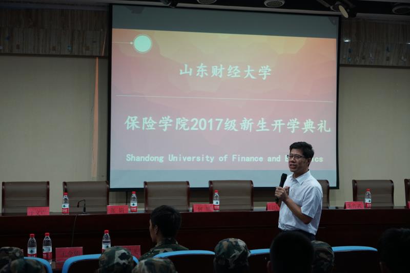 山财大保险行业校友会副会长兼秘书长何旭以及副秘书长陈修国作为校友代表发言。何旭学长首先表达了对老师们的感谢和对新生的欢迎,何旭学长介绍了校友会的规模及现状,分享了自己的人生感悟并寄语新同学,希望同学们学会学习、学会包容、保持健康快乐。陈修国学长首先以“致你最美好的四年”为题送上了对新生的祝福,然后结合自身成长经历以现身说法给予新生一些忠告。他说:“思维比知识更重要、过程比结果更重要、付出比收获更重要、要通识不要功利、要自信不要自卑,要友情不要滥情...”。两位校友的发言激情澎湃,激发了新生对大学生活的热情和向往。
