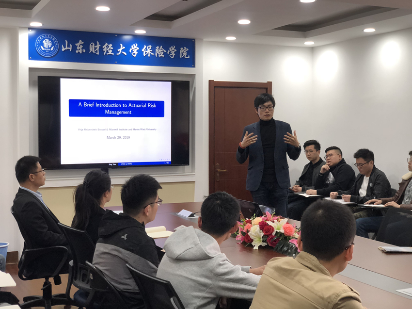 3月29日下午,英国赫瑞瓦特大学统计精算系姚经教授应邀来我院为师生作了题为“A Brief Introduction to Actuarial Risk Management”的精彩学术报告。太阳成集团122ccvip副院长于文广教授、精算系副主任李世龙副教授及研究生一年级学生聆听了报告。报告由于文广教授主持。