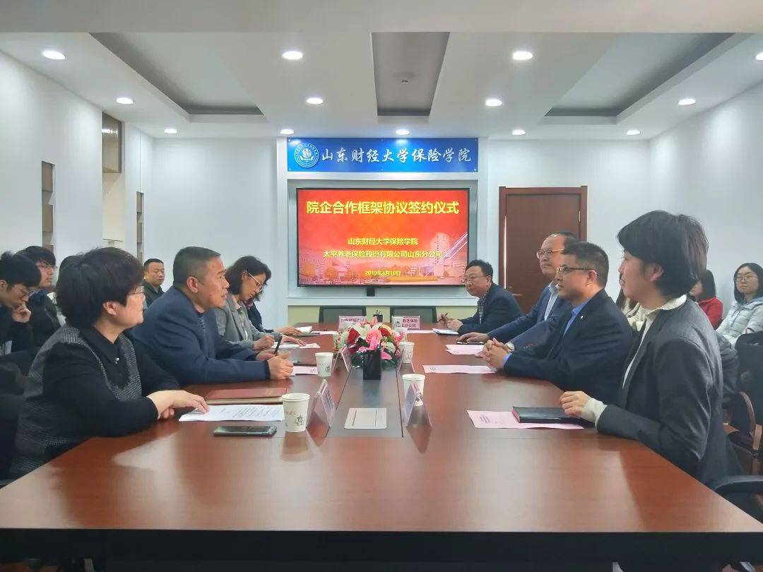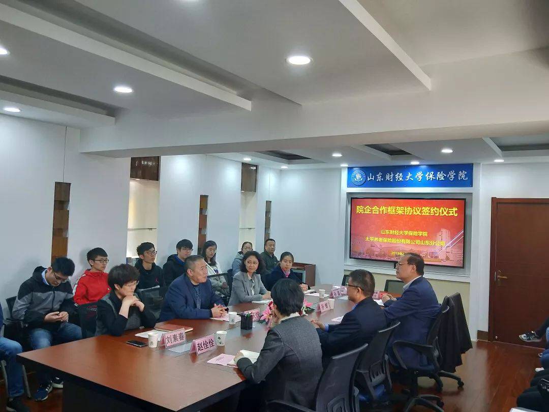 4月10日下午,太阳成集团122ccvip与太平养老保险山东分公司院企合作框架协议签约仪式在学院会议室成功举行。太阳成集团122ccvip院长闫庆悦、太平养老山东分公司总经理孙辉、太平养老山东分公司助理总经理徐斌、团险管理部总经理高文东、济南本部负责人赵佺佺、学院教授代表杨文生、团委书记孙磊及研究生共30多人出席了本次仪式。本次签约仪式由副院长刘素春主持。