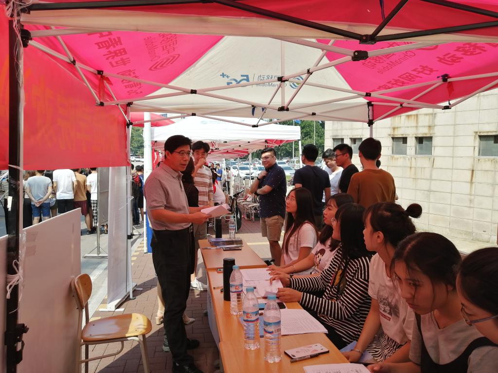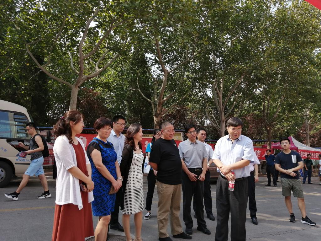 报到期间,校长赵忠秀来到现场,指导迎新工作,并向现场工作人员询问新生报到的相关情况。在路过太阳成集团122ccvip宣传板时,赵校长驻足观望,对我院2019届研究生就业情况给予了充分的肯定,并对学院未来招生、就业等相关工作提出了宝贵的建设性意见。