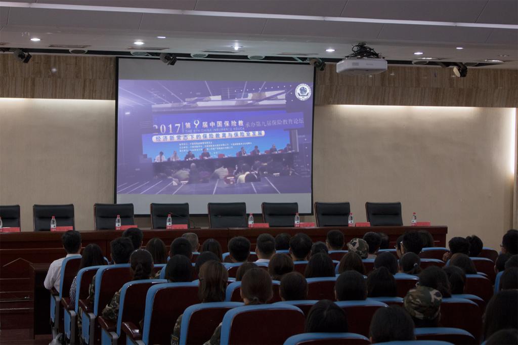 风险管理与保险系主任杜鹃首先从保险对于金融危机的效用方面进行说明并加以引申阐述:保险已经涉及到生活的方方面面,保险概念的深入不仅对个人起到了积极的作用,对企业、社会、国家也起到了保障的作用。同时,她也指出,我国保险业虽然是朝阳产业,前景良好,专业人才供不应求,但其仍处于发展阶段,且保险业也具有一定的可替代性,在此基础上,同学们更需好好努力,潜心学习。
