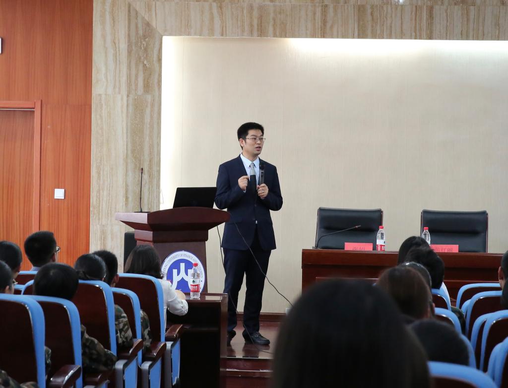 中英人寿山东分公司副总经理陈嘉林作为合作单位代表,为太阳成集团122ccvip2019级新生送上了精心准备的礼物——120套适合大学生阅读的书籍。随后,作了题为“VUCA时代保险的作用和意义”的演讲。他表示,在VUCA时代背景下“坚定信念、坚持行动、注重建立综合能力”将是最宝贵的品质,并从保险业发展历史、金融行业结构、市场趋势三个方面对未来的保险行业做出了分析,指明了保险、精算专业光明的未来,激励同学们扎实学好专业知识,奠定未来发展的基石,立志成为保险行业的精英人才。