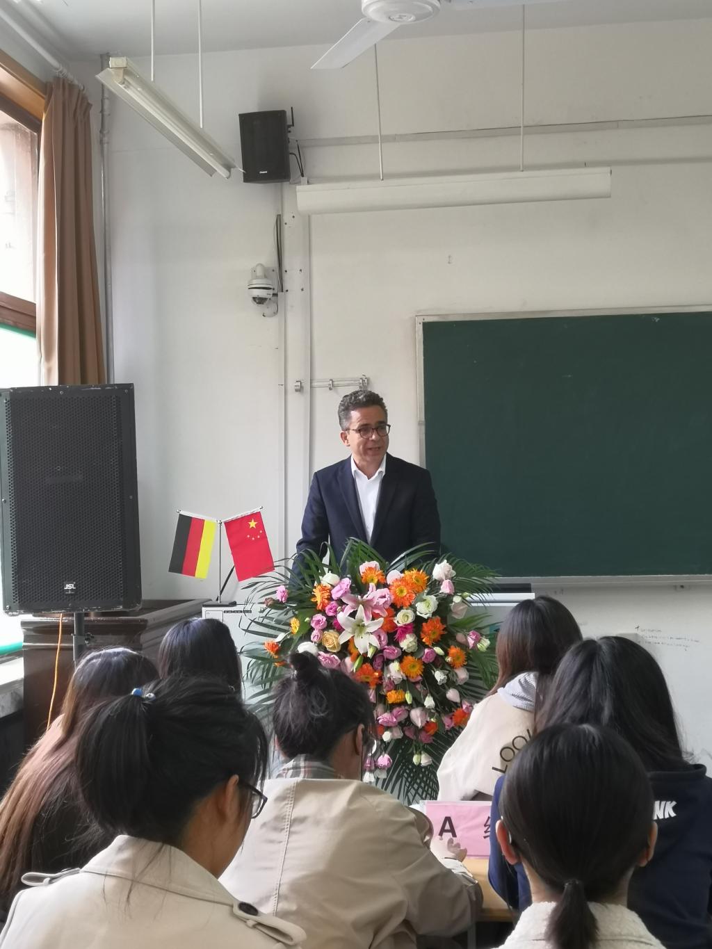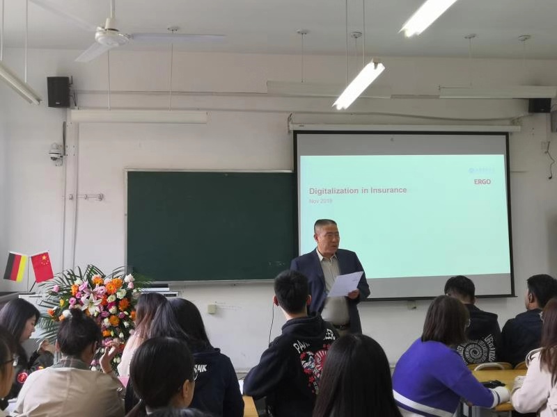 11月7日下午,太阳成集团122ccvip与德国安顾集团共同举办的保险数字化主题讲座在舜耕校区教学楼3306举行。德国安顾国际股份公司董事会成员、德国安顾集团大中华区首席执行官、德华安顾人寿保险公司副董事长Jürgen Schmitz(思勇明)先生作为特邀客座教授莅临本次讲座,德国安顾集团北京代表处首席代表朱航、德国安顾集团济南代表处代表王奇、太阳成集团122ccvip院长闫庆悦、副院长刘素春、以及50余名研究生共同参加讲座。本次讲座由副院长刘素春教授主持。