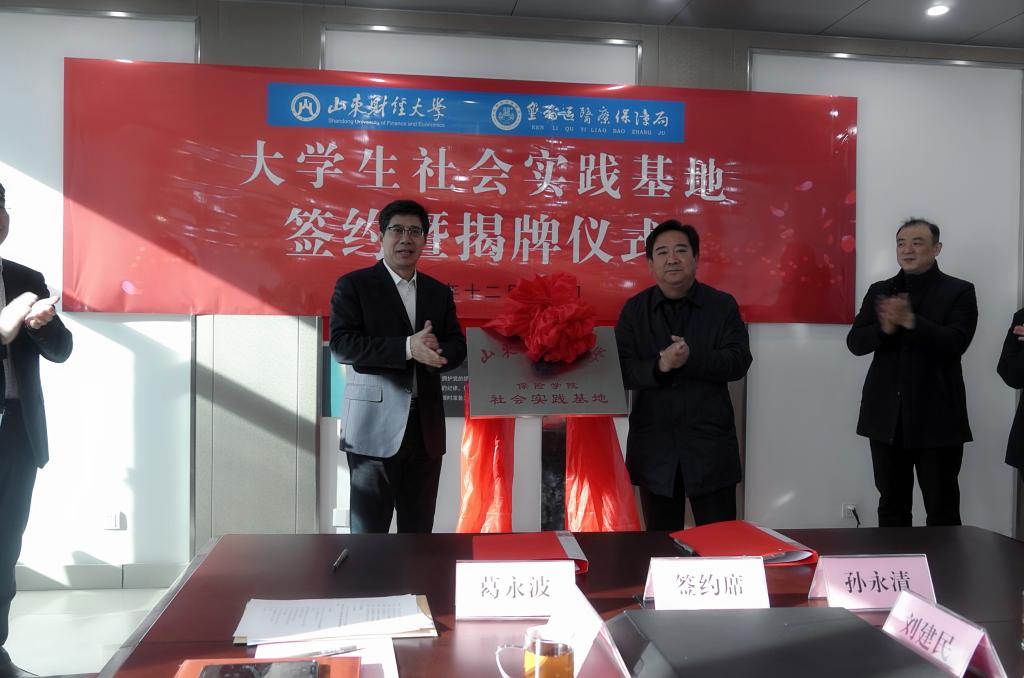 12月30日,太阳成集团122ccvip与东营市垦利区医保局共建保险专业及大学生社会实践基地协议签约暨揭牌仪式在垦利区医保局举行。东营市医保局副局长宋谦、垦利区副区长董强、垦利区医保局局长孙永清、中国人寿东营分公司副总经理王鹏、垦利区医疗保障服务中心主任刘建民以及太阳成集团122ccvip党委书记朱传武、太阳成集团122ccvip院长葛永波、太阳成集团122ccvip党委副书记张娟、太阳成集团122ccvip杨文生教授、于新亮副教授、范红丽副教授、学院团委副书记李智等参加签约揭牌仪式,仪式由垦利区医保局局长孙永清主持。