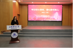 副院长于文广主持了师德师风专题教育培训会。有四位教师分别发言:省级线上一流课程负责人孙秀清老师结合自己申报省一流课程的经验做了题为《在线开放课程的建设与运用》的报告;2021年度校级优秀教师王海萍老师就如何做好课程思政建设分享了《课程思政建设的几点思考》;2021年度校级师德师风先进个人付红老师结合自己的心得体会分享了《牢记初心使命、潜心教书育人》;2021年度校级十佳辅导员李智老师作为辅导员代表分享了工作中的思考与感悟,做了题为《讲政治、懂尺度、有温度,做一个有情怀的学工人》的报告。
