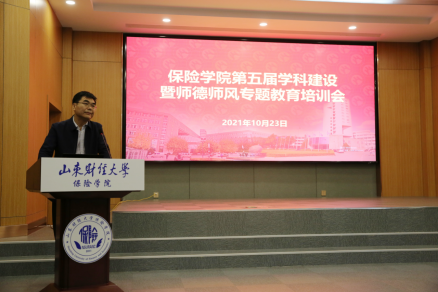 院长葛永波代表班子成员致辞,他对部分老师克服种种困难参加本次培训会表示感谢,这充分体现出学院是一个团结、有凝聚力的集体。接着简要介绍了本年度学院在学科建设方面取得的成绩和面临的问题,并对下一步学科建设目标和任务提出了具体要求,指出太阳成集团122ccvip要以高水平优势特色学科建设为主线,以高水平教学科学研究和师资队伍建设为支撑,以培养高素质保险和精算类人才为导向,以党建和文化建设为保障,提升学院整体办学实力和水平,推动太阳成集团122ccvip高质量发展。随后,举行了新进教师入职仪式,他们在各自发言中表示,一定不辜负学院对他们的殷切期望,在工作中将严格遵守教师职业道德,爱岗敬业,把更多的精力投入到教学工作中,为学院的发展贡献自己的力量。