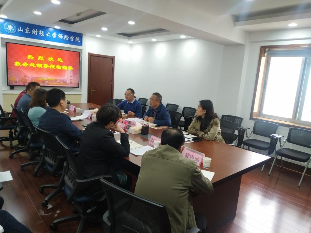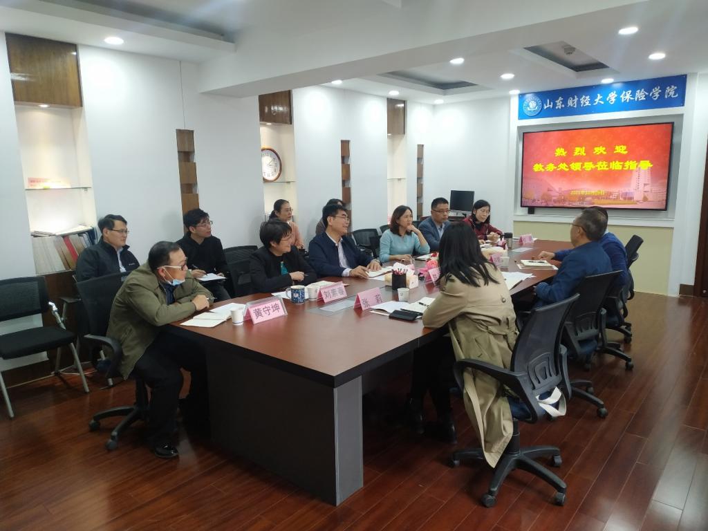 2021年10月29日,教务处陈保启处长、许滋坤副处长、张莉科长一行到我院调研。调研座谈会在学院会议室举行,葛永波院长、张娟副书记、刘素春副院长、于文广副院长以及系主任黄守坤、杜鹃、副主任付红、于新亮和教学秘书吕萍参加了座谈会。