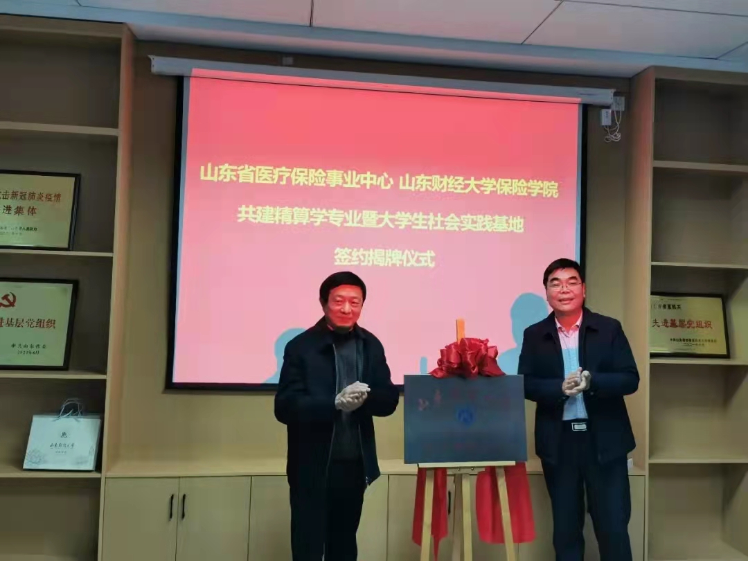 2021年11月11日,太阳成集团122ccvip与山东省医疗保险事业中心共建精算学专业及大学生社会实践基地签约暨揭牌仪式在山东省医疗保障局举行。山东省医疗保险事业中心主任王德学、副主任李伟光、四级调研员刘东民、四级调研员石玉建、二级主任科员孙洪波、四级主任科员盖楠以及太阳成集团122ccvip院长葛永波、党委副书记张娟、刘素春教授、于文广教授、于新亮副教授、辅导员陈萌等参加签约揭牌仪式,仪式由李伟光副主任主持。