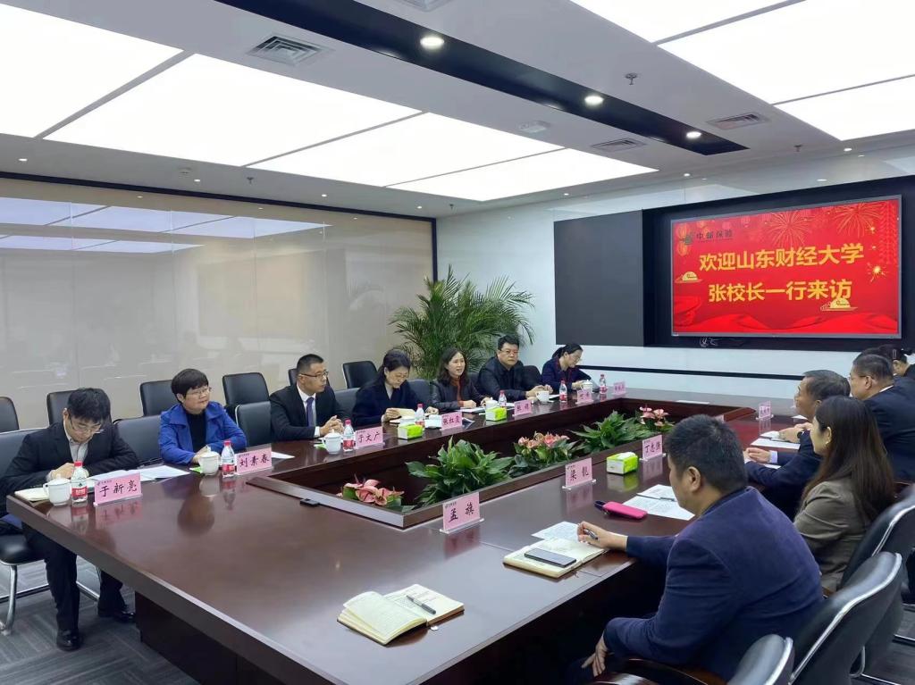 随后张红霞一行来到中邮保险山东分公司,在总经理丁志强的陪同下先后参观公司职场新环境,详细了解了企业文化和公司发展情况。座谈会上,丁志强充分肯定了财大校友为企业作出的积极贡献,双方就校企合作发展模式、学生就业岗位需求等问题进行了深入交流, 对校企合作的基本构想达成重要共识。
