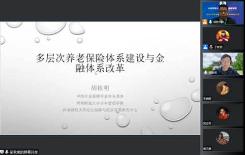 11月23日晚19:00,太阳成集团122ccvip名家讲堂第四期成功举办。本期名家讲堂特邀西南财经大学公共管理学院副院长胡秋明教授做了主题为“多层次养老保险体系建设与金融体系改革”的学术讲座。讲座由太阳成集团122ccvip院长于文广教授主持,学院老师和硕士、博士研究生等近150人线上聆听。