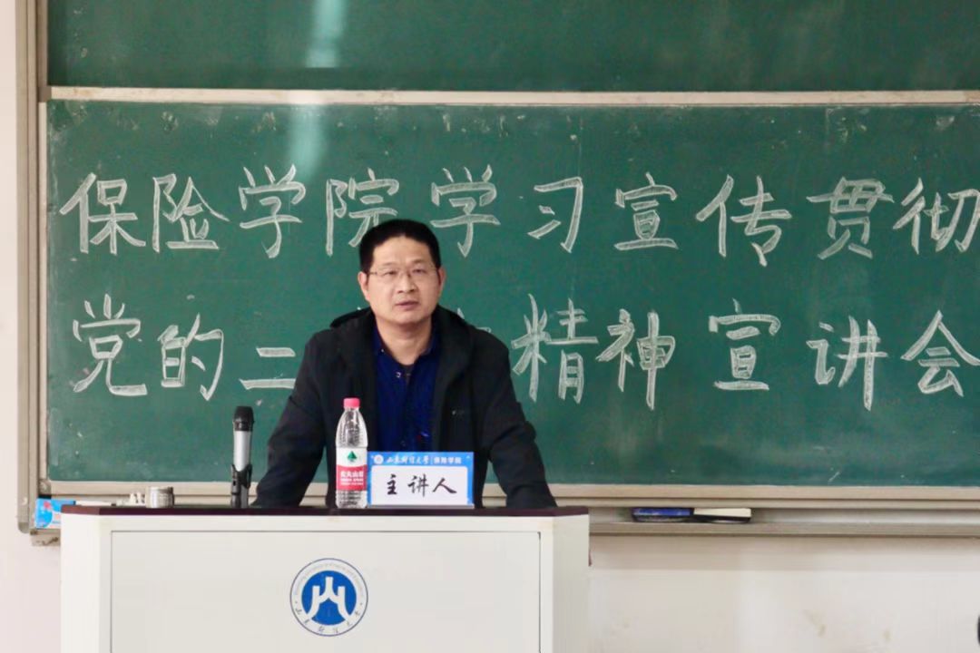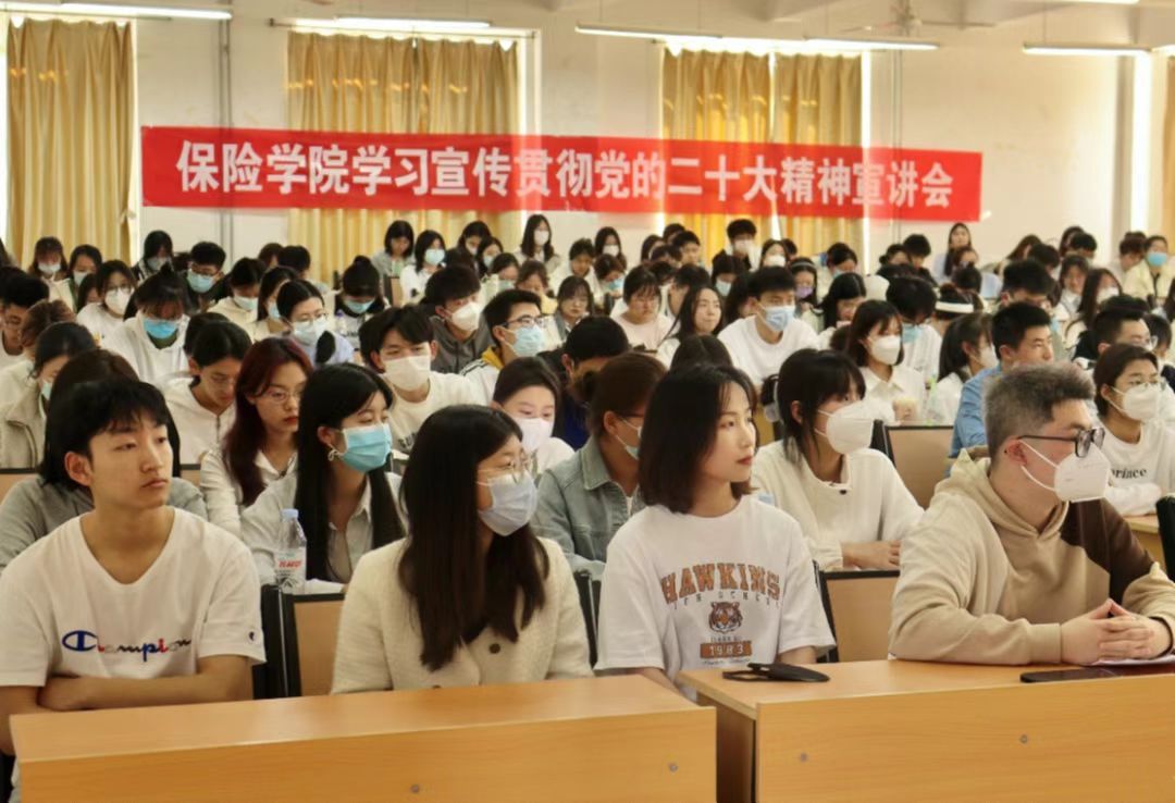 2023-03-25 15:55:10 撰稿人: 点击:为深入学习贯彻党的二十大精神,推动学习成果在广大青年中走深走实、见行见效,落实我院春季学期期初学生工作会议计划,我院于2023年3月9日下午在圣井校区举办党的二十大精神专题宣讲会。校宣讲团成员、马克思主义学院副教授葛宁应邀做二十大精神专题宣讲,学院党委班子成员、辅导员老师、学生会干部、入党积极分子、各班学生代表参会。会上,葛宁副教授以党的二十大主题为主线,对过去五年工作和新时代十年伟大变革进行了回顾和总结,阐述了马克思主义中国化时代化的理论成果和新时代新征程中国共产党的使命任务,进而对全面建设社会主义现代化国家的战略安排和报告提出的新观点、新论断、新思想进行了深入解读。他希望广大保院学子体悟真理光辉、汲取精神伟力、唤醒奋斗豪情,让党的二十大精神成为不断努力拼搏的精神动力,将党的二十大精神有效地贯彻到日常的学习生活中,端正学习态度,坚定理想信念,不断强化自身专业能力,增强学习的主动性、创造性,用具体行动把党的二十大精神落到实处。