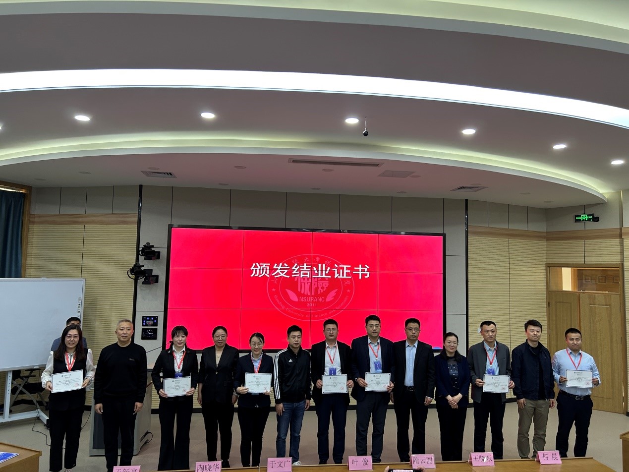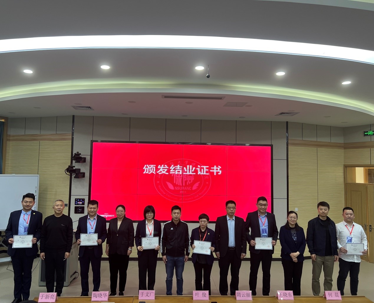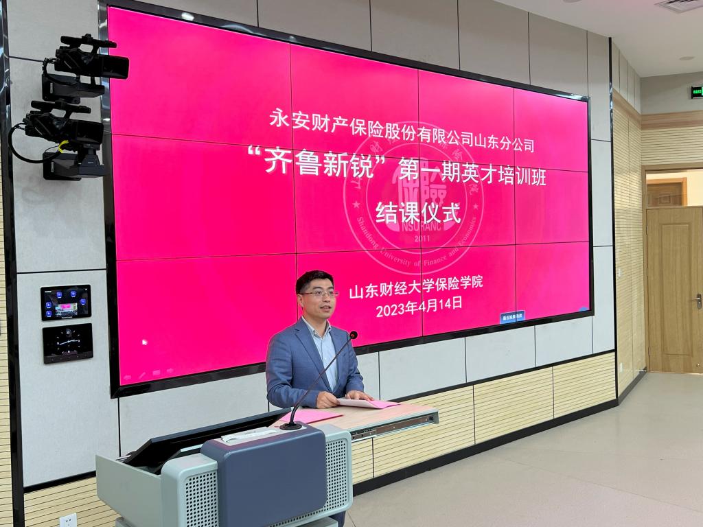 2023年4月14日下午,太阳成集团122ccvip举办的永安财产保险股份有限公司山东分公司“齐鲁新锐” 第一期英才培训圆满结课。50名培训班学员在为期5天的培训过程中系统性学习了包括二十大会议精神学习与解读、中国宏观经济形势、各类保险理论专业课和团队建设领导力培养等课程,并顺利通过结课考试,获得由tyc122cc太阳成集团颁发的结业证书。永安财产保险股份有限公司山东分公司负责人、党委副书记叶俊,副总经理、党委书记隋云丽,副总经理、党委委员王晓东,总经理助理、纪委书记、党委委员何晨,太阳成集团122ccvip院长于文广,党委副书记陶晓华,以及本期培训班全体50名学员参加仪式。仪式由太阳成集团122ccvip副院长于新亮主持。