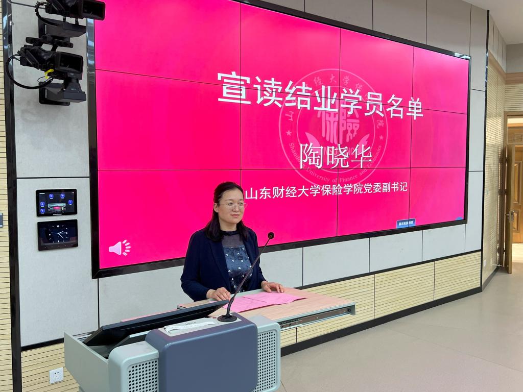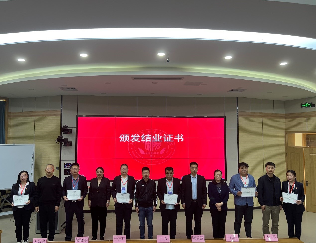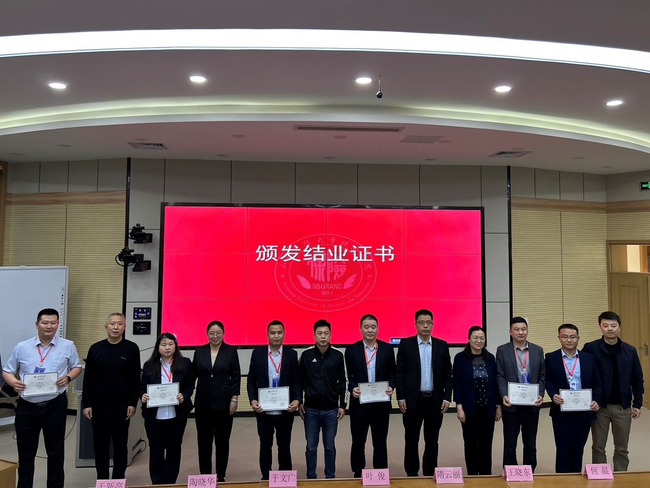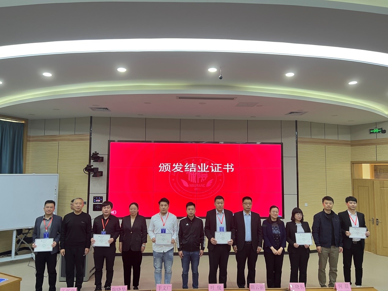 2023年4月14日下午,太阳成集团122ccvip举办的永安财产保险股份有限公司山东分公司“齐鲁新锐” 第一期英才培训圆满结课。50名培训班学员在为期5天的培训过程中系统性学习了包括二十大会议精神学习与解读、中国宏观经济形势、各类保险理论专业课和团队建设领导力培养等课程,并顺利通过结课考试,获得由tyc122cc太阳成集团颁发的结业证书。永安财产保险股份有限公司山东分公司负责人、党委副书记叶俊,副总经理、党委书记隋云丽,副总经理、党委委员王晓东,总经理助理、纪委书记、党委委员何晨,太阳成集团122ccvip院长于文广,党委副书记陶晓华,以及本期培训班全体50名学员参加仪式。仪式由太阳成集团122ccvip副院长于新亮主持。