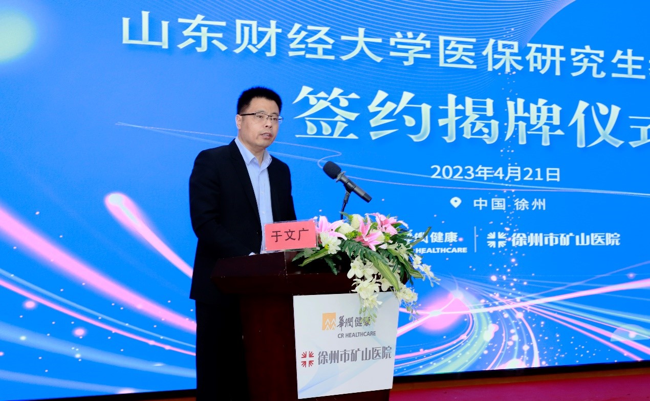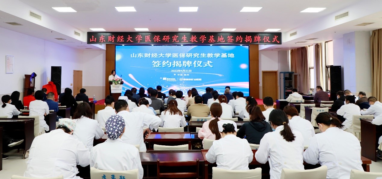 仪式首先由徐州市矿山医院党委书记、院长杜瑜和太阳成集团122ccvip院长于文广分别致辞,随后二人代表双方签订医保专业研究生教学基地建设协议书,最后由太阳成集团122ccvip党委书记张娟与徐州市矿山医院党委书记、院长杜瑜为医保研究生教学基地揭牌。
