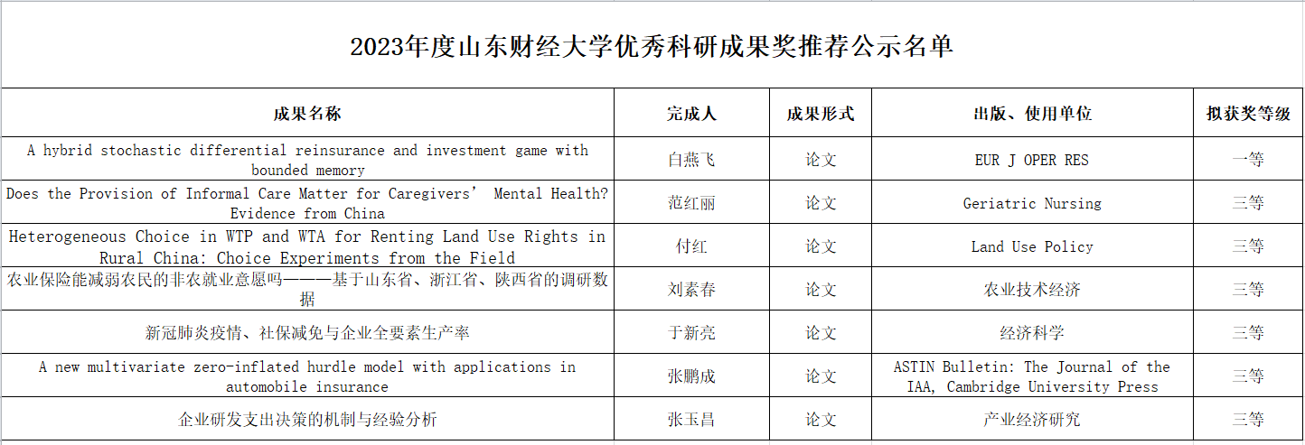 另外,根据《tyc122cc太阳成集团优秀科研成果奖评选办法》要求,在个人申报、单位推荐的基础上,按照公平、公正、公开的原则,学校组织专家对申报的2022年度、2023年度科研成果进行了认真评审,推选出tyc122cc太阳成集团优秀科研成果奖。我院教师在2022年度评选中获得一等奖两项、二等奖一项,在2023年度评选中获得一等奖一项、三等奖六项,获奖名单如下: