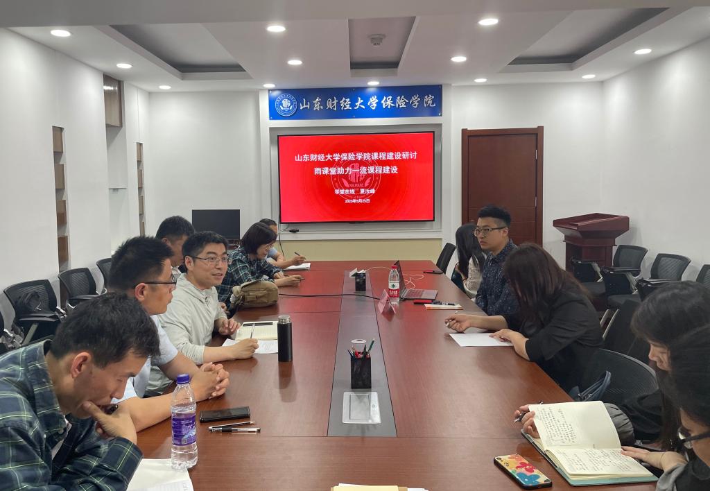 为贯彻山东省教育厅发布《关于推动课堂教学改革全面提高普通本科高校人才培养质量的通知》要求,准确把握新时代高等教育发展面临的新形势新任务,推动一流课程建设,促进课堂教学改革,5月25日下午14:30,我院召开课程建设研讨会,特邀学堂在线夏汝峰老师做主题为“雨课堂助力一流课程建设”的分享。会议由于新亮副院长主持,学院各系主任、课程负责人和教师代表参与研讨。