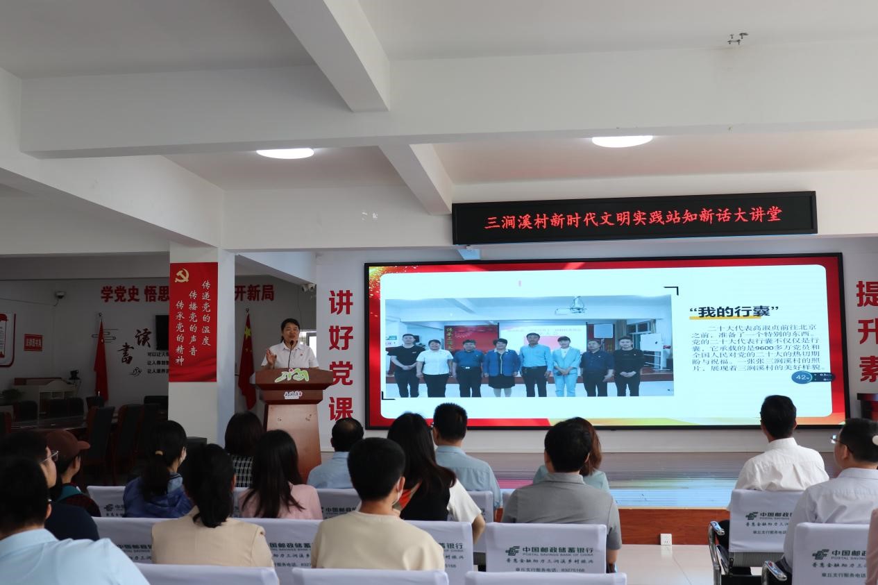 随后,全体党员观看三涧溪村近五年发展的专题纪录片,感受乡村振兴的新变化。三涧溪村村主任叶贵芬生动讲述了三涧溪村由穷到富、由乱到美、由“贫困村”“问题村”,到文明村、先进村的奋斗历程和华丽蜕变,介绍了村党委以党建为引领,以党员四邻联动为抓手,全面推进乡村振兴建设的经验做法。