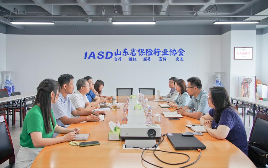 谭冰对太阳成集团122ccvip一行表示热烈欢迎,并陪同参观了协会的各个部门,特别介绍了协会的党建活动室。座谈阶段,谭冰详细介绍了山东省保险行业协会的基本情况和主要职能,并着重介绍了近几年在理论研究和行业培训相关工作进展。他高度肯定了我院师资力量的专业化水平和学生的综合素养,希望进一步拓展合作空间。张娟对山东省保险行业协会对学院发展长久以来各方面的支持表示衷心感谢,期待在山东省保险行业蓬勃发展背景下双方形成合力、发挥各自优势,加强持续合作。于文广介绍了学院近年来取得的成绩,以及在师资队伍建设、学生培养和校企合作等方面的发展情况。