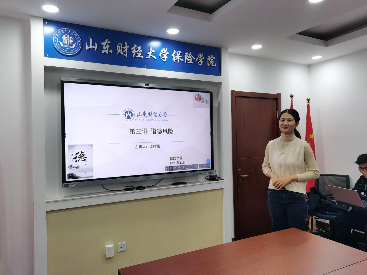 随后,范红丽介绍了本次比赛的顺序、规则以及打分标准。八位青年教师依次就道德风险、森林保险、人寿与健康保险、保险投资原理、保险合同主体、统计学习在精算科学中的应用、最大诚信原则和保险会计的前提和基础等多个专业核心课程的主要章节和知识点进行教学展示。参赛青年教师们声情并茂,挥洒自如,以新颖独特的课堂设计,条理清晰的教学表达,自然合理的课堂思政进行沉稳从容的讲授。良好的课堂教学效果,展示出我院青年教师较高的职业素养和专业水平,赢得了评委和观摩教师们的一致好评。