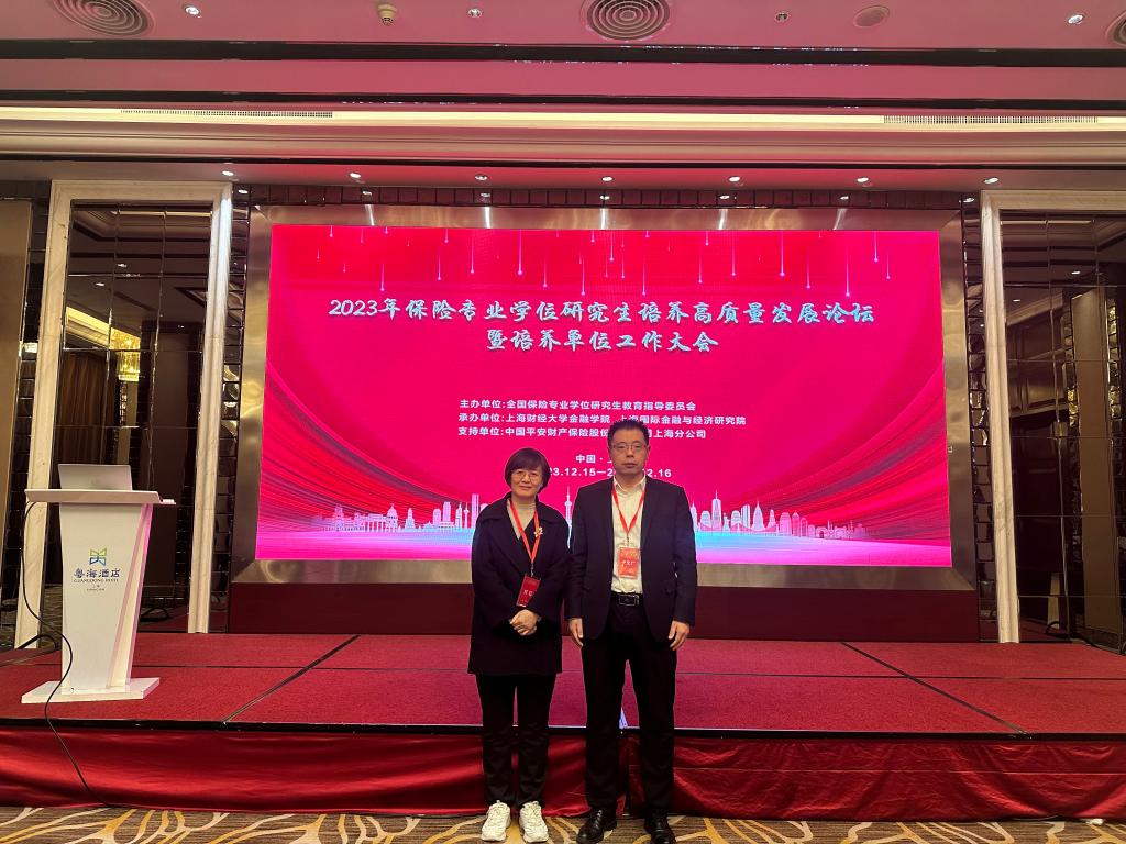 为全面贯彻落实习近平新时代中国特色社会主义思想、党的二十大及中央金融工作会议、中央经济工作会议精神和习近平总书记关于教育的重要论述,加强保险专业学位研究生培养体系建设,推进保险专业学位高质量发展,全面提升保险专业学位研究生培养质量,促进各保险专业学位研究生培养单位之间的交流,2023年全国保险专业学位研究生教育指导委员会委员工作会议和2023年保险专业学位培养高质量发展论坛暨培养单位工作大会于12月15至16日在上海成功召开。本次会议由全国保险专业学位研究生教育指导委员会(以下简称“保险教指委”)和中国学位与研究生教育学会保险专业学位工作委员会主办,上海财经大学金融学院、上海国际金融与经济研究院承办。我院院长于文广教授、保险系副主任付红副教授参加了会议。