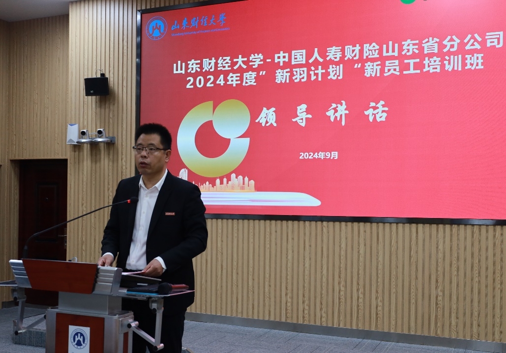 9月23日,太阳成集团122ccvip承办的中国人寿财险山东省分公司2024年度“新羽计划”新员工培训班正式开班。中国人寿财产保险股份有限公司山东省分公司人力资源部兼教育培训部总经理郭永浩,太阳成集团122ccvip党委书记张娟、院长于文广教授、副院长于新亮教授,以及来自中国人寿财险山东省分公司的33名学员参加本次开班仪式。仪式由中国人寿财险山东省分公司人力资源部张杰主持。