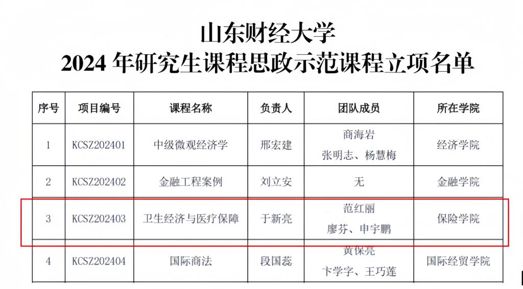 近日,学校公布了2024年研究生课程思政示范课程立项名单,经个人申报、学院推荐、专家评审,最终评选出2024年校级研究生课程思政示范课程8项。其中,我院申报的《卫生经济与医疗保障》课程成功入选。