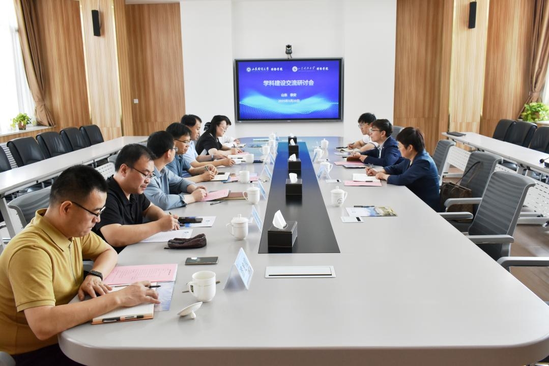 在山东科技大学财经学院,学院党委书记陈炳志、院长刘庆志、副院长宗科、副院长主父海英及相关人员出席了座谈会。座谈会上,刘庆志首先对太阳成集团122ccvip一行的到来表示热烈欢迎,并详细介绍了学校的基本情况、校区分布以及财经学院的学科建设现状。他希望双方在保险学科建设、人才培养及科研交流等方面发挥各自优势,进一步深化合作,推动双方合作向更深层次发展。于新亮介绍了太阳成集团122ccvip在保险与精算学科建设方面的进展,并分享了在教学与科研领域的具体经验。刘素春则从学位论文质量提升、毕业生就业竞争力等方面提出了建议。双方就当前学科领域中的热点问题展开了深入的讨论,达成了多项共识,特别是在建立线上线下联动机制、推动师生互访与资源共享、协同凝练学科特色等方面,为后续的深度合作奠定了坚实基础。
