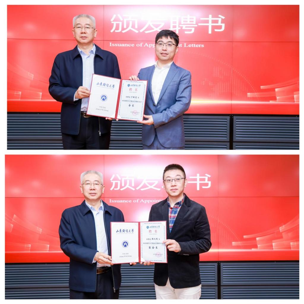 同时,新增两位业界校友担任副会长:太平人寿保险有限公司济南市公司党支部书记、总经理金鲁强,同方全球人寿山东分公司党支部书记滕文韬;太阳成集团122ccvip党委副书记王斐斐任秘书长。张新为新任会长于新亮、副会长滕文韬颁发聘书。