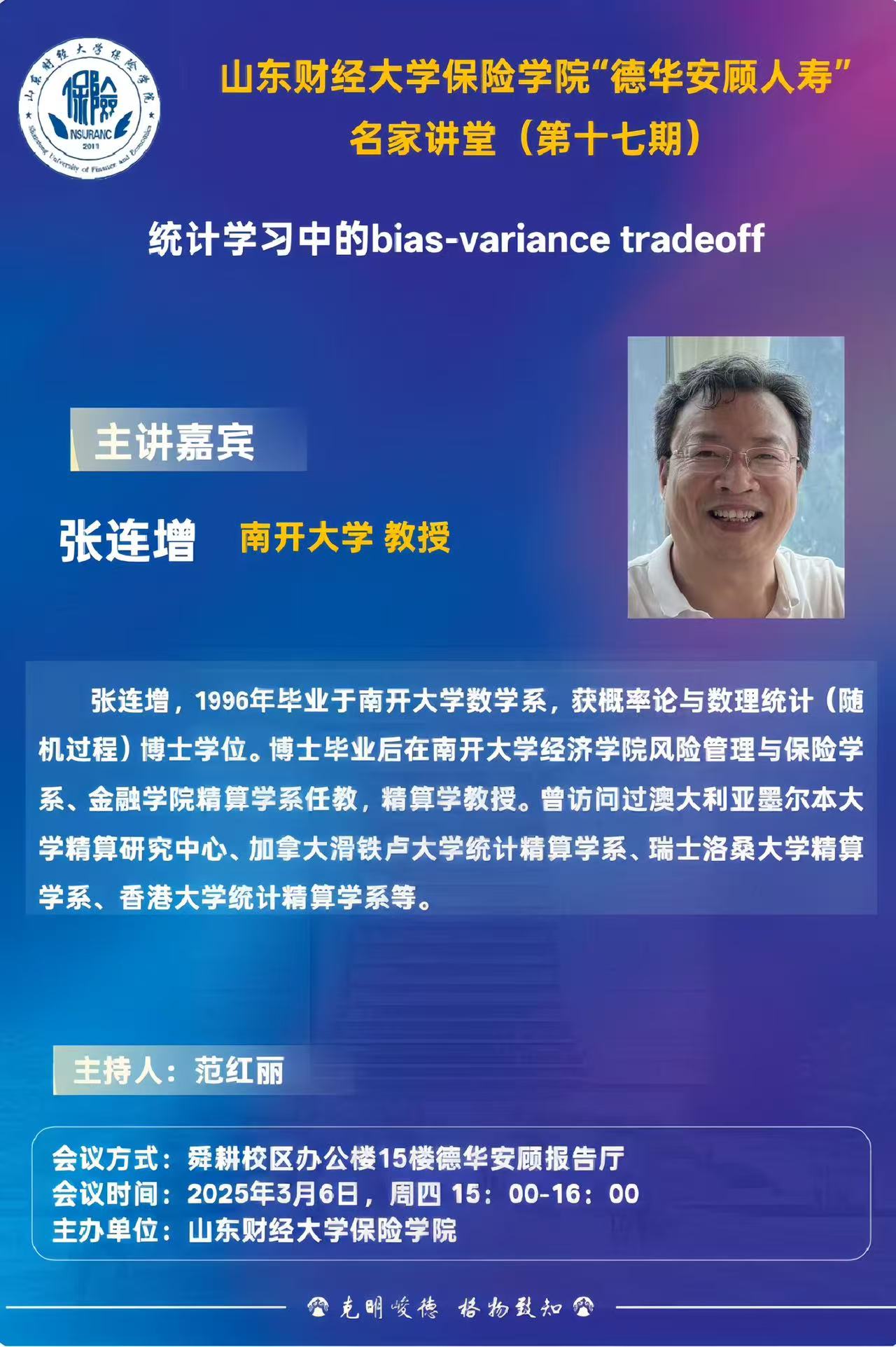 太阳成集团122ccvip“德华安顾人寿”名家讲堂(第十七期),3月6日,15:00,报告人:张连增