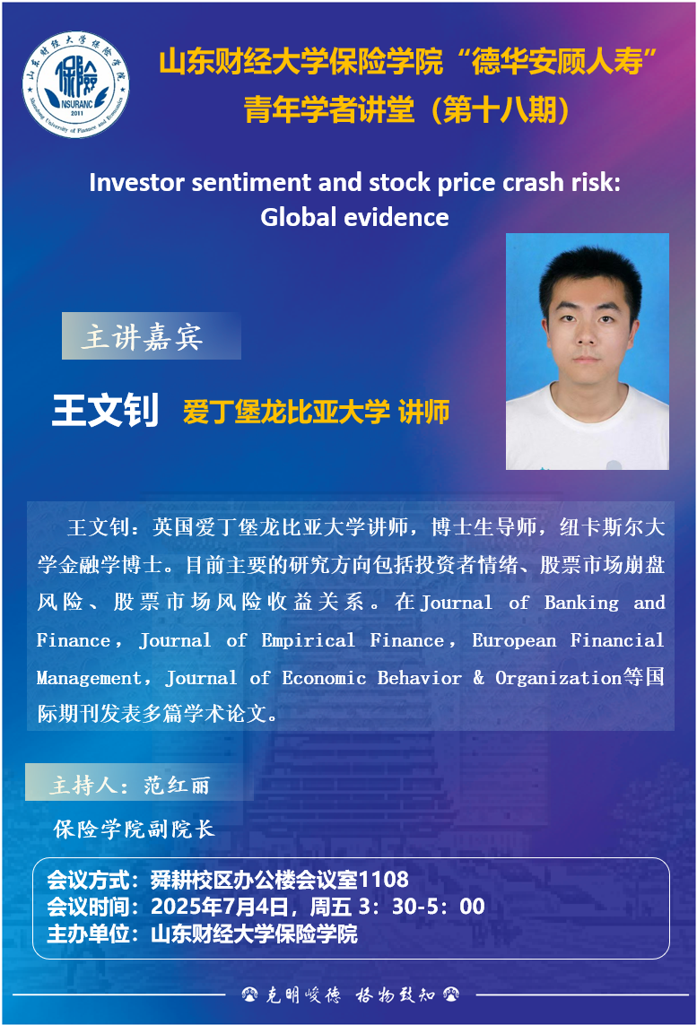 太阳成集团122ccvip“德华安顾人寿” 青年学者讲堂(第十八期),7月4日,15:30,报告人:王文钊