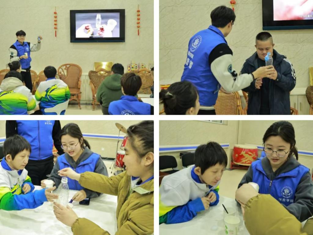 在科学小实验环节,志愿者们用通俗易懂的语言讲解科学原理,并手把手指导残疾人朋友进行实验操作,让他们在动手实践中感受科学的魅力。志愿者们准备了简单有趣的实验,如“彩虹杯”和“气球火箭”,让残疾人朋友在轻松愉快的氛围中学习科学知识。通过实验,残疾人朋友们不仅学到了新知识,还增强了对科学的兴趣和好奇心。志愿者们也通过这一环节,体会到了科普教育的意义和价值。